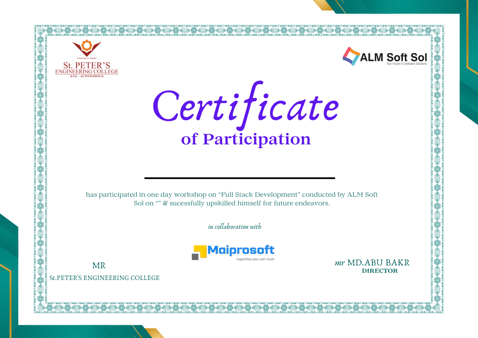 FULL STACK DEVELOPMENT- ONE DAY WORKSHOP – ALM SOFT SOL