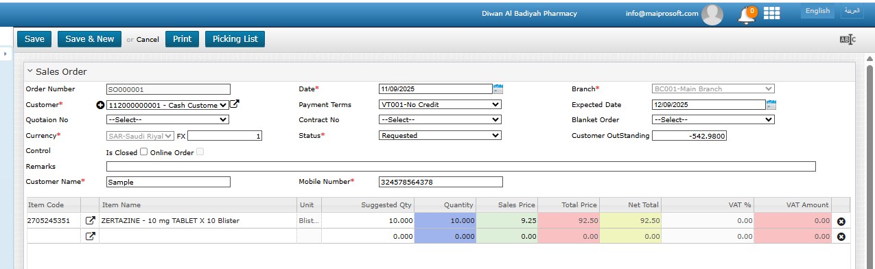 – Sales Orders: Record confirmed customer sales orders.