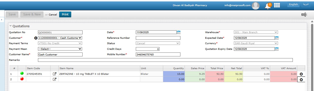– Quotations: Generate and manage price quotations for customers.