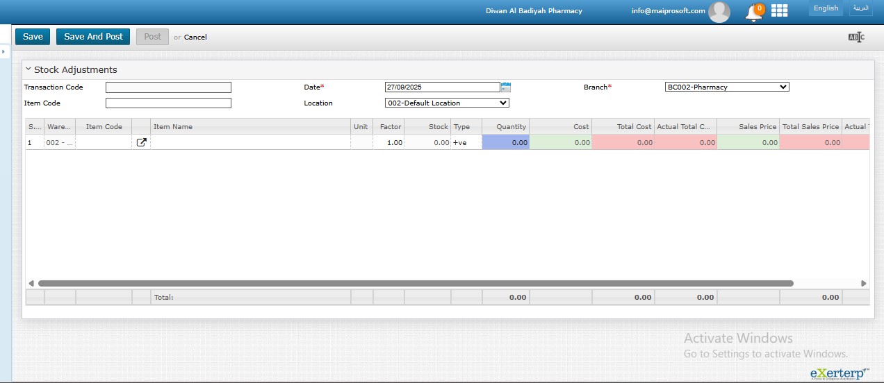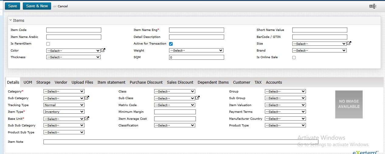 The Master Setup module provides configuration options required for inventory operations. It allows defining categories, subcategories, product types, warehouses, and units of measurement. This ensures that inventory data is well-structured, consistent, and ready for use in transactions.